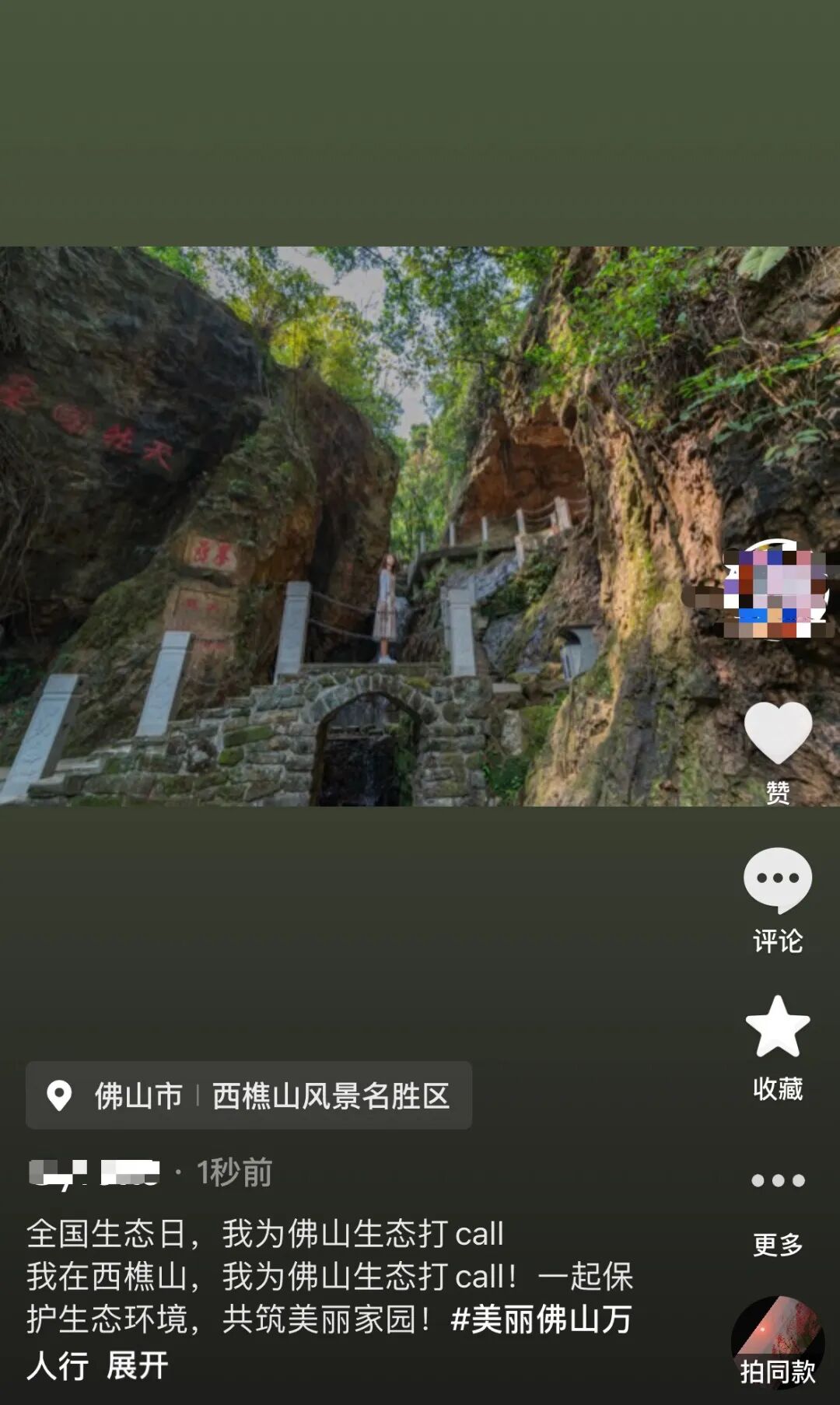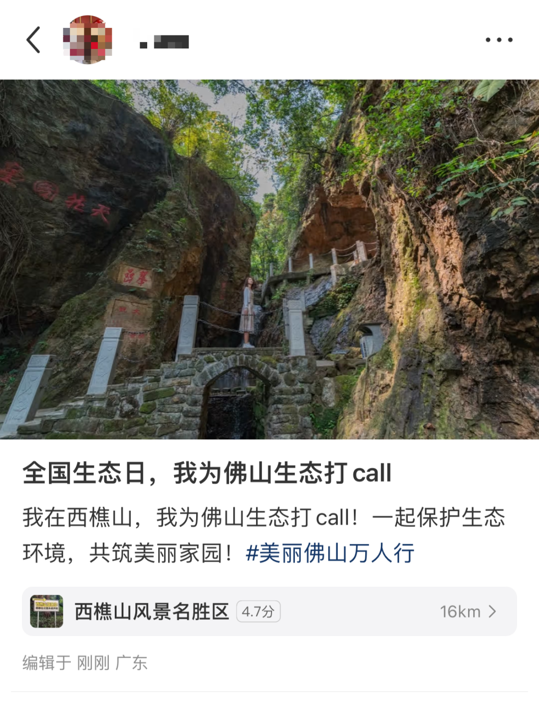 正文文案模板:我在【景点名称】,我为佛山生态打call!+10字以上自定义感言
