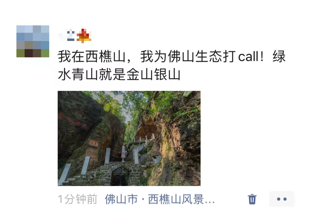 文案模板:我在【景点名称】,我为佛山生态打call!+10字内自定义感言