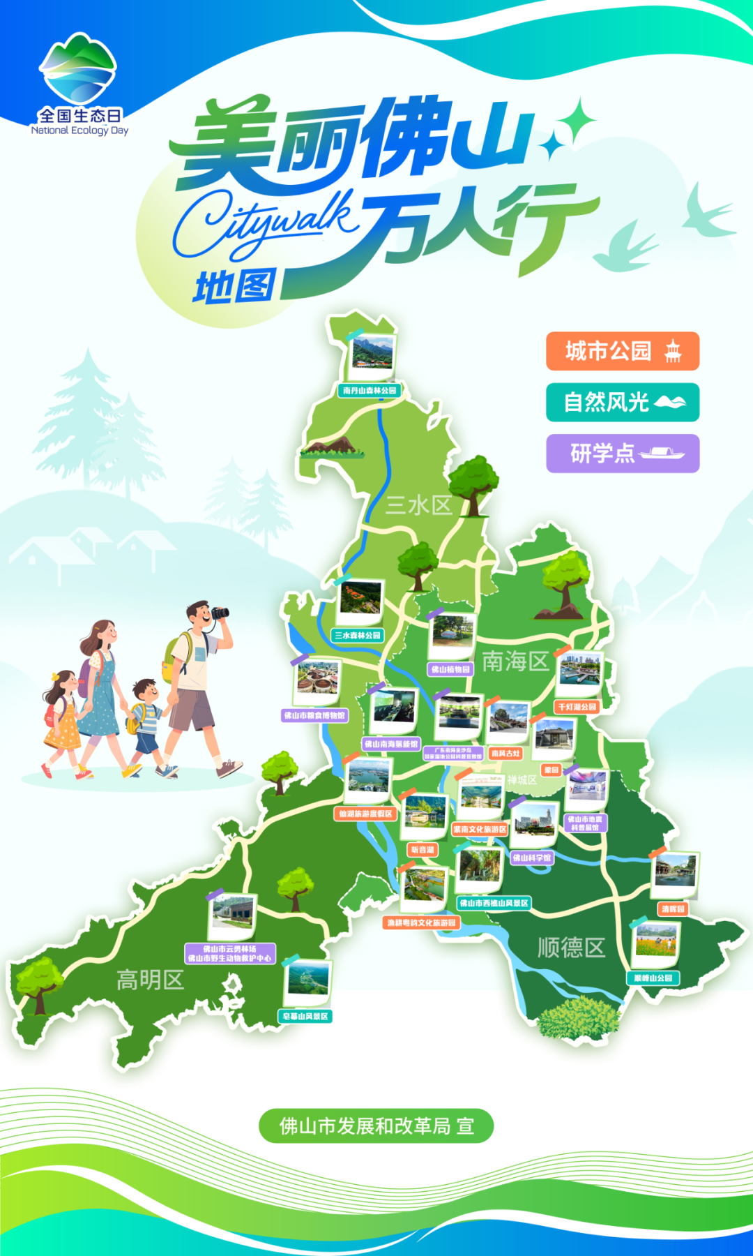 8月15日上午,佛山市“全国生态日”活动将在全市20个点位同步开展,包括生态知识快问快答、我的生态宣言、佛山生态代言人等互动环节及“美丽佛山万人行”Citywalk-两江生态之旅打卡,邀请广大市民用脚步丈量绿美佛山,在游玩和研学中体验两江生态建设成果。