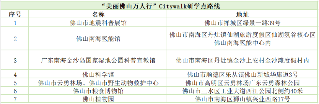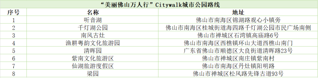 市民可跟着“美丽佛山万人行”Citywalk地图进行游玩打卡。地图以环两江先行区为核心,分为城市公园、自然风光及研学点三类路线,共20个打卡点。